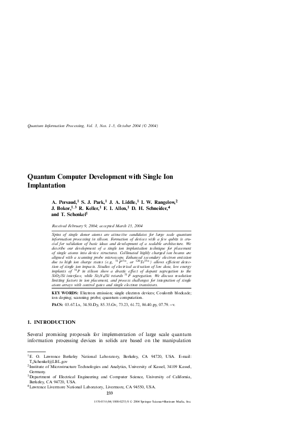 Pdf Quantum Computer Development With Single Ion Implantation Ivo Rangelow Academia Edu